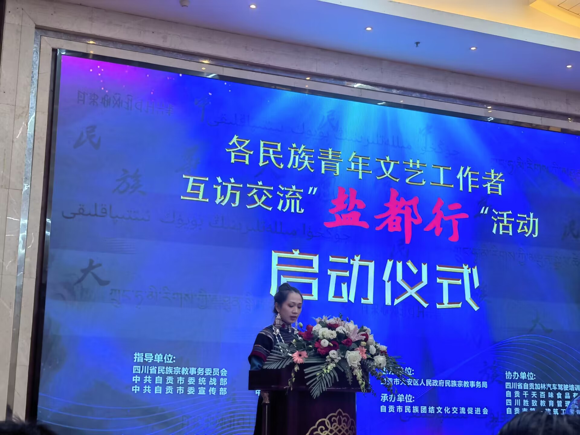 为全面深入学习贯彻党的二十大精神,以铸牢中华民族共同体意识为主线,促进各民族交往交流交融,推动民族文化文艺繁荣发展,持续推进基层民族团结进步创建工作,11月16日,各民族青年文艺工作者互访交流“盐都行”活动在自贡启动。省民族宗教委二级巡视员蔡钦,自贡市委常委、统战部部长吴进学出席启动仪式并致辞。开元官网学生工作部副部长刘明洋,团委委员毛启平,民族文化交流社社长袁林萍等30名师生文艺青年代表参加启动仪式暨新时代民族文化文艺发展交流论坛。