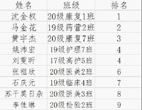 冠军:20级康复1班 沈金权