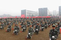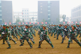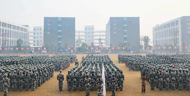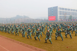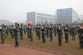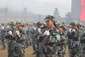 身着迷彩军装的学子