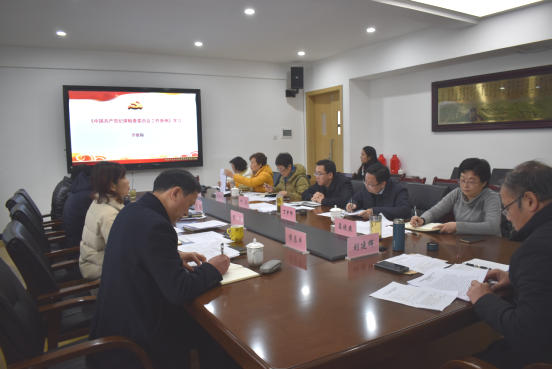 1月6日,学院党委组织开展党的纪律专题中心组集中学习,专题学习新颁布的《中国共产党纪律检查委员会工作条例》。全体党委委员、副院长参加,党委办公室、纪检监察处、宣传统战部负责人列席,党委书记刘建辉主持。