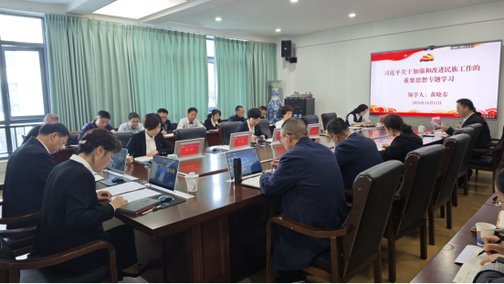会上,黄晓春领学了习近平总书记在全国民族团结进步表彰大会上的讲话精神、习近平总书记在二十届中央政治局第九次集体学习上的讲话等内容。