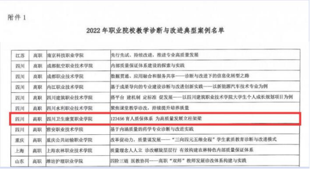 近日,中国教育科学研究院职业教育与继续教育研究所公布了2022年职业院校教学诊断与改进典型案例评选结果,开元官网学生层面诊改工作案例《123456育人质保体系 为高质量发展立柱架梁》入选。本次优秀案例评选由教育部职业教育与成人教育司组织,经专家评审,从全国28个省份的576份案例中,共选出142份职业教育诊改典型案例,旨在全面总结诊改试点工作经验,加强对典型案例、理论研究成果的宣传推广工作,发挥试点院校的示范引领作用。