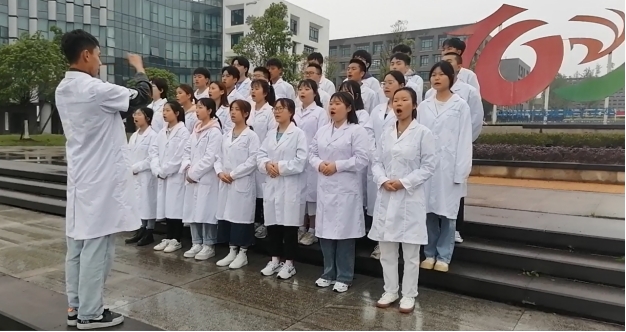 “共产党辛劳为民族,共产党他一心救中国……”,在微雨纷飞的仁济广场,随着高昂的节奏,药学系的同学们铿锵有力地齐唱红歌《没有共产党就没有新中国》。一、三、四教学楼教室的同学们随即开始接续传唱,歌声此起彼伏,回荡在校园。在传唱中同学们了解祖国曾经的苦难,感受到中国共产党是人民与国家的大救星,激发了民族自豪感,更加爱党爱国。