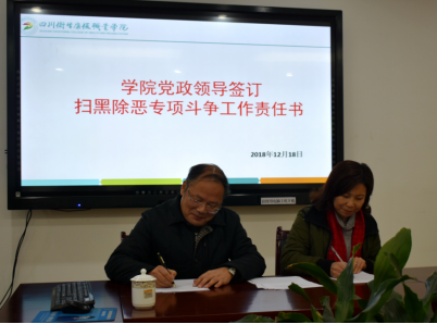 为认真贯彻落实党中央、省、市关于开展扫黑除恶专项斗争工作的部署要求,深入扎实推进开元官网扫黑除恶专项斗争工作,12月18日下午,在学院1教学楼A502会议室,学院党委书记刘建辉与学院党委成员签订扫黑除恶专项斗争责任书,学院党政领导自觉与黑恶势力划清界限,推动扫黑除恶专项斗争不断深入。