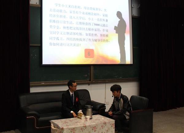本次大赛分初赛和决赛,初赛内容为基础知识笔试和自我介绍及工作展示两项内容;决赛包括学生情况熟知测试、主题演讲和谈心谈话情景再现三项内容。基础知识测试主要考核辅导员思想政治教育理论及法律法规、班级日常管理及博文写作等知识。自我介绍及工作展示将辅导员们的个性特点与班级工作的实际效果相结合。学生情况熟知测试是难度系数较高的项目,要求辅导员根据随机抽取的三名学生姓名,在规定时间回答出该生的性别、班级、家庭住址、性格、职务及奖助学金获得情况等基本信息,此环节考察了辅导员对其所带学生基本情况的把握程度,测试结果显示开元官网辅导员熟知所带学生,不仅能回答出学生的基本情况,甚至连学生性格特点都能熟悉得胜似家人,充分体现了“一口清”的工作要求。在主题演讲环节,辅导员们更是将对工作的激情与对学生的关爱展现得淋漓尽致。而当比赛进行到最后一轮谈心谈话环节就更为精彩,辅导员们与学生现场互动,或是春风化雨润心田,或是语重心长促警醒。察言观色而又情真意切,妙语连珠而又任重道远。辅导员的精彩表现得到了评委充分肯定和观众们的阵阵掌声。