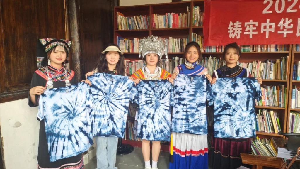 同学们首先来到了贡井区老街手艺人非遗体验坊,在这里他们学习了扎染工艺的历史、特点和制作技巧。在老师的指导下,他们亲手将布料设计、折叠、捆扎、染色,制作出一件件独具特色的扎染制品。等待染色的间隙,他们又跟随老师学习了剪纸工艺,看着自己亲手制作的一件件独具特色的剪纸制品,大家都兴奋不已。