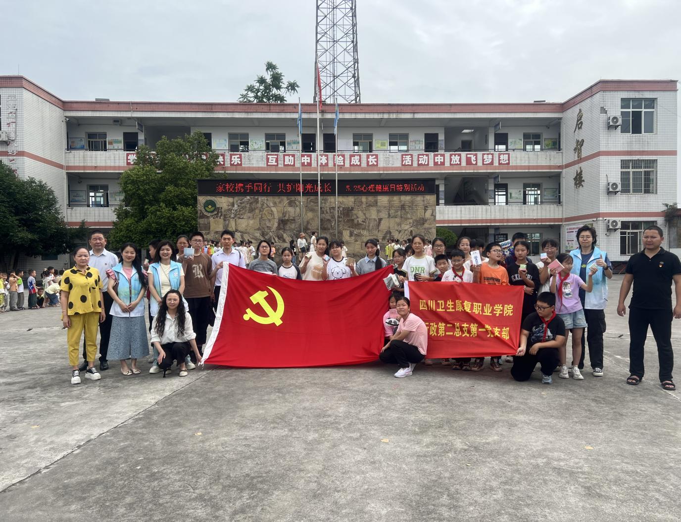 为深入贯彻落实党的二十大关于重视心理健康和精神卫生工作,充分发挥党建引领作用和高校党支部服务社会的职能,5月23日,开元官网行政第二总支第一党支部带领党员教师及学生志愿者,赴对口帮扶的自贡市富顺县古佛镇九年制学校,开展“家校携手同行 共护阳光成长”心理健康教育主题党日活动。活动旨在以实际行动践行党员责任与担当,发挥高校心理育人优势,深化心理健康教育辐射效能,推动家校协同育人,助力乡村教育发展,切实为群众办实事、解难题。