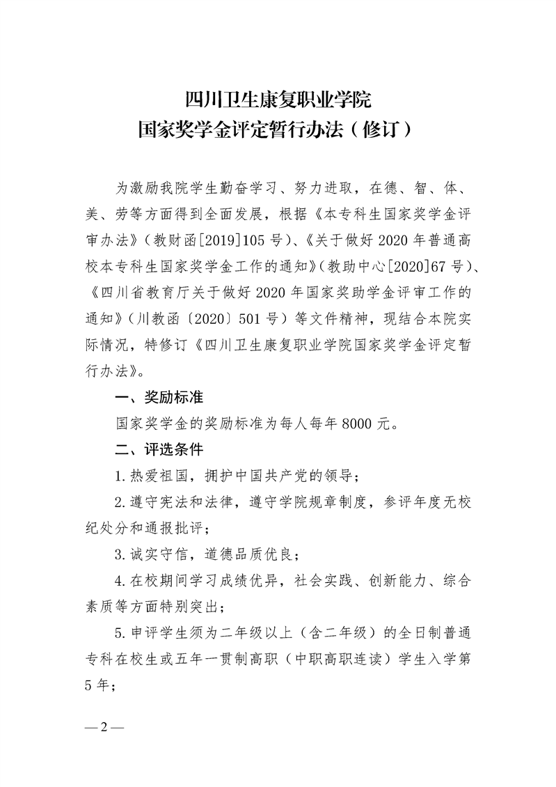国家奖学金评定暂行办法(修订)