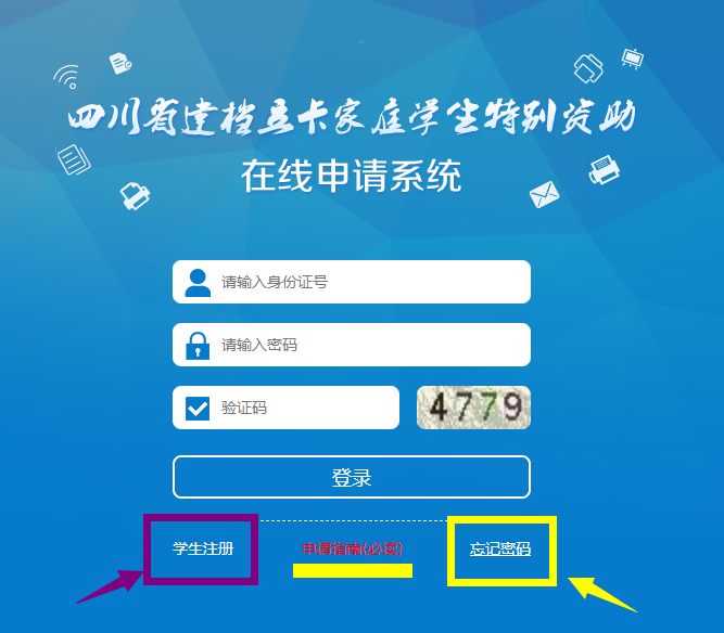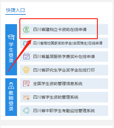 在主页面找到“学生登录”,点击“四川省建档立卡资助在线申请”。
