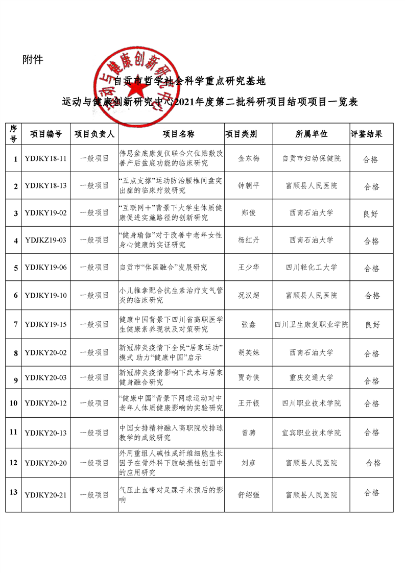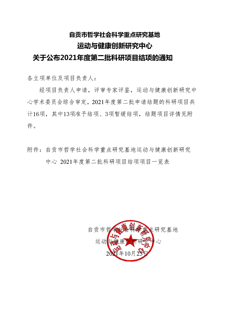 运动与健康创新研究中心关于2021年度第二批科研项目结项的通知