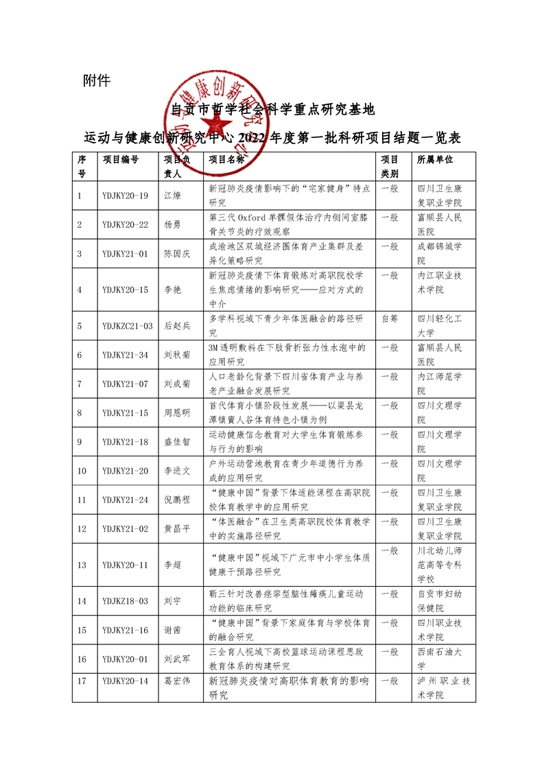 下一条:【项目申报】 自贡市哲学社会科学重点研究基地 运动与健康创新研究中心2022年度项目申报通知