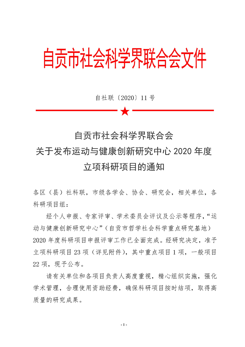 关于发布运动与健康创新研究中心2020年立项科研项目的通知