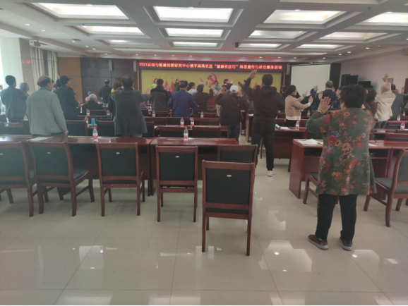 活动中,姜艳老师围绕“健康是我们最美的心愿”为主题,为广大居民讲授健康知识,传播健康文化;吴小彩老师和学生一起向社区居民实践推广由国家体育总局科学研究所创编的《科学健身十八法》,并发放健康知识宣传册。现场气氛十分热烈,居民积极参与了健康知识问答与健身活动,并纷纷表示活动弘扬了科学精神、普及了科学知识,真正践行了为群众办实事。社区相关领导同志也对本次活动给予了高度评价,并表示希望继续深化社区与中心的合作交流,为更好满足社区群众的需要共同努力。