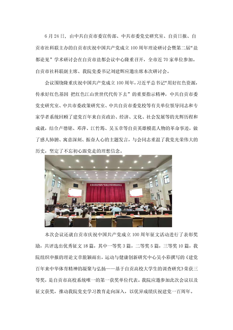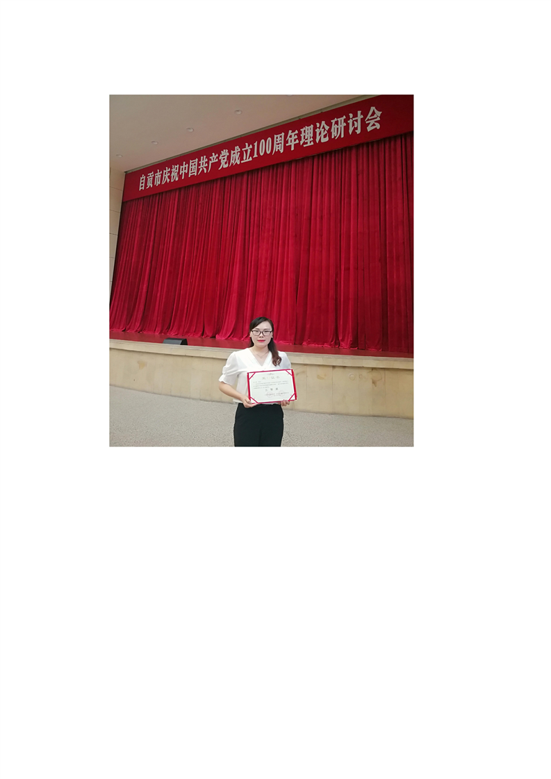 研究中心吴小彩在自贡市庆祝建党100周年优秀征文中获奖