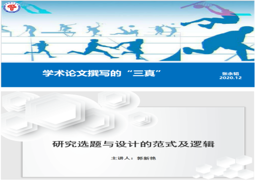 12月10日晚,由管理学博士、四川省学术和技术带头人后备人选、成都体育学院教授、经济管理学院院长郭新艳,作《研究选题与设计的范式及逻辑》专题讲座。郭教授结合典型案例,生动形象地讲述了有效研究选题的“重要性、新颖性、好奇心、范围、可操作性”的五大范式。此外,她旁征博引,主要围绕“研究问题与研究设计的匹配、测量和操作、模型制定”等方面讲述了研究设计的基本逻辑。
