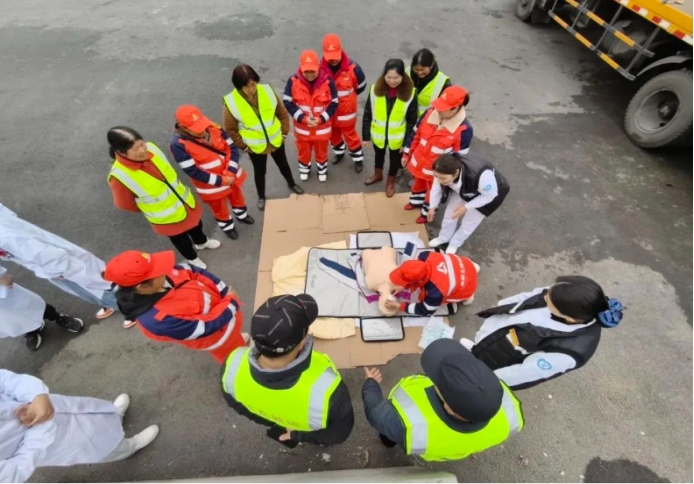 义诊现场,每一位医护人员仔细询问、耐心倾听他们有什么身体不适,并给出了相关建议。急诊科医护人员用教学人偶给大家演示了人工呼吸和胸外按压的方法,提高了大家的急救技能。