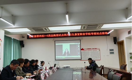 随后,药品食品学院院长钟辉云作了学院发展建设和教育部第四批1+X药品购销试点建设工作情况的汇报。会议通过直播形式对站点6个模块进行了现场验收。与会双方就站点建设、考场布置、资料准备等问题交换了意见。