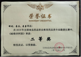 近年来,药学系教师先后获得各种奖项28项(国家级12项),其中获得2013、2015年自贡市说课比赛二等奖、一等奖,2014年“凤凰创壹杯”全国职业院校信息化教学大赛三等奖,2015年全国中等职业学校医药卫生类专业“创新杯”教师信息化教学设计和说课大赛一等奖,2017年全国食品药品职业教育药学类专业云课堂比赛三等奖,2018年四川省中医药教育协会高职组说课比赛一等奖,2018年自贡市人民政府教学成果奖二等奖等,2019年获全国食品药品职业教育微课比赛二等奖1项、三等奖2项,全国临床创新与发明大赛三等奖1项。2020年荣获全省职业院校教师教学能力大赛二三等奖各1项,荣获四川省中医药职业教育协会教学设计比赛三等奖1项。2021年荣获“黄炎培职业教育杰出教师奖”1项。