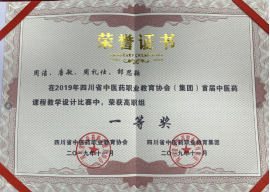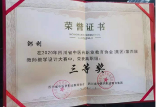 近年来,药学系教师先后获得各种奖项28项(国家级12项),其中获得2013、2015年自贡市说课比赛二等奖、一等奖,2014年“凤凰创壹杯”全国职业院校信息化教学大赛三等奖,2015年全国中等职业学校医药卫生类专业“创新杯”教师信息化教学设计和说课大赛一等奖,2017年全国食品药品职业教育药学类专业云课堂比赛三等奖,2018年四川省中医药教育协会高职组说课比赛一等奖,2018年自贡市人民政府教学成果奖二等奖等,2019年获全国食品药品职业教育微课比赛二等奖1项、三等奖2项,全国临床创新与发明大赛三等奖1项。2020年荣获全省职业院校教师教学能力大赛二三等奖各1项,荣获四川省中医药职业教育协会教学设计比赛三等奖1项。2021年荣获“黄炎培职业教育杰出教师奖”1项。