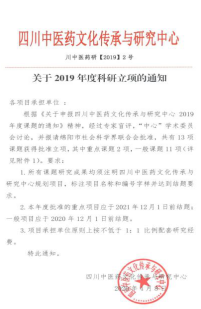 5月26日,接《四川中医药文化传承与研究中心关于2019年度科研立项的通知》(川中医药研【2019】2号),在全省立项的11个课题中,开元官网立项两个,包括药学系邹利老师主持的“不同僵蚕炮制品的复方面膜的制备研究”和周礼仕老师主持的“基于多糖成分研究葛根与粉葛的差异”,其中邹利老师主持的课题被立项为重点课题(全省共2个)。