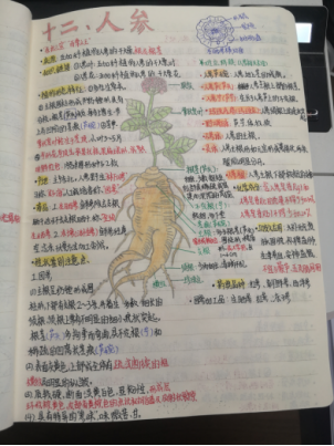 临近期末,看着郑茜老师办公桌上一摞摞写满文字的笔记本等待评阅,办公室的老师都被学生对专业,对课程的热爱深深打动。有些同学图文并茂,将原植物、断面及显微图用简笔画的形式展现出来,层次分明,逻辑清晰,用彩合理;有些同学则能全面的还原课堂重难点,具有很强的笔记梳理能力;有些同学的笔记每一页都是艺术品,从字里行间能够感受到是用文艺的心在做笔记。