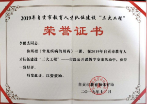 近日,接自贡市教育体育局文件(自教体函[2019]206号)通知,药学系副主任李鹏杰经过一年的培养、考核和认定,正式被评定为“自贡市教学名师”。