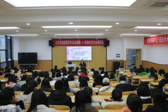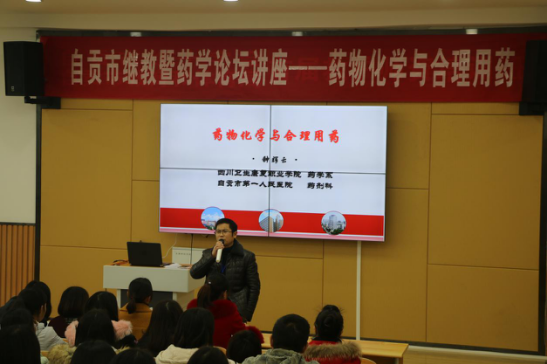 为丰富学院师生合理用药相关知识,药学系于11月23日在1-B301举行了自贡市继教暨药学论坛讲座——药物化学与合理用药。此次讲座由药学系主任钟辉云主讲,来自校内外的100多人参加。
