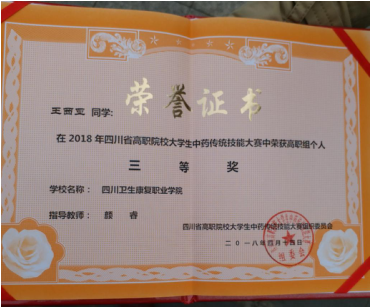 4月13至14日,在四川省中医药高等专科学校举行的四川省首届中药传统技能竞赛中,开元官网刚开设一年多的新专业(中药学专业)学生王西亚表现较为突出,在16名选手中以第六名的好成绩荣获大赛三等奖,并将与乐山职业技术学院和四川省中医药高等专科学校的各2名选手一道(共5人),代表四川省参加于5月31至6月1日在山东烟台举行的全国中药传统技能大赛。