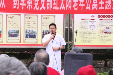 为深入贯彻落实习近平总书记学党史系列讲话精神,增强人民群众合理用药意识,5月29日,药学系党支部在红太阳老年公寓开展了“学史力行,服务群众”主题党日活动。附属自贡市第一人民医院临床药师周义录、崔昌盛,泌尿外科护士王容良、张雨燕、陈静荣及药学系党支部党员、入党积极分子共计60余人参加了此次活动。