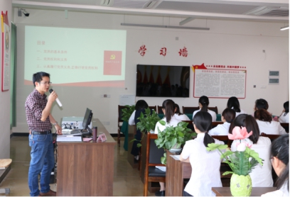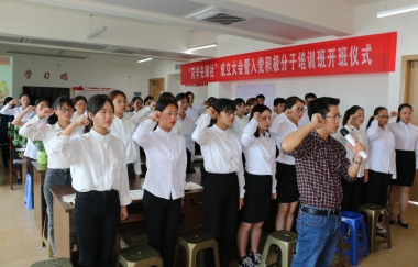 开班仪式上,钟辉云主任带领全体党员和积极分子在党旗前庄严宣誓。宣誓结束后,钟主任为积极分子上了一堂精彩纷呈的党课,钟主任结合自身经历生动的阐述了党员的权利和义务,以及如何成为一名优秀的共产党员。