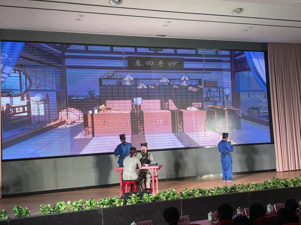 药品食品学院党总支为大家带来了一场精彩纷呈的红色情景剧《百年同心,医路风华》,通过“七叶一枝花”的神话传说、李时珍成就医学巨著《本草纲目》、抗日战争期间首支中药注射试剂研发试用等场景,以中医药传承创新为脉络,展现了中医药作为中华文明兴盛的见证者、亲历者,在不同的时代发挥不同的作用,号召师生厚植爱国主义情怀,树立文化自信,坚持中医药文化传承创新,积极投身中华民族伟大复兴的光荣事业。