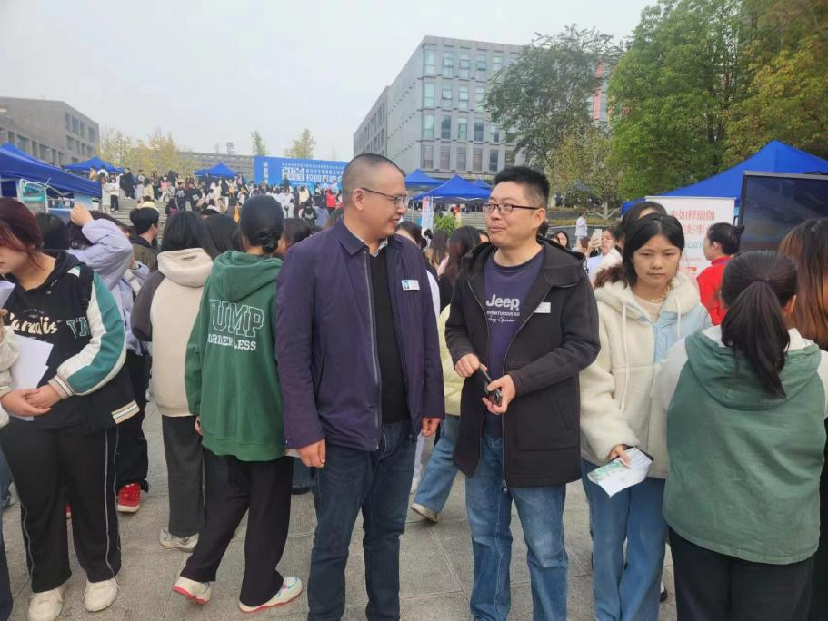 为帮助毕业生科学定位、积极应聘,党员教师在双选会现场为毕业生进行简历诊断,提供就业咨询,帮助调整求职心态,传授面试技巧等指导服务。同时,深入展位与用人单位交流,了解行业最新动态发展,向用人单位推荐学生。学院联系领导熊骥勉励毕业学生,当前就业形势严峻,大家要保持积极乐观的心态,树立正确的就业观,既要有远大的理想,又要脚踏实地,从实际出发,不好高骛远,要勇于面对挑战,抓住机遇,善于在逆境中成长,努力在平凡的岗位上创造不平凡的业绩。