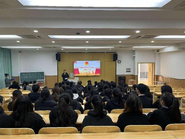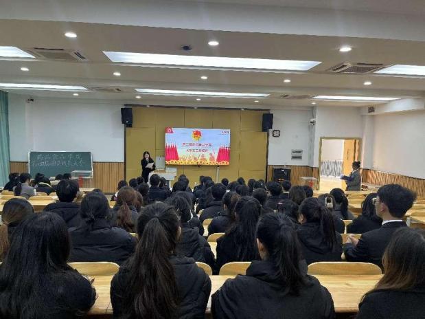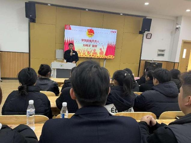 最后,校团委负责人刘明洋总结致辞,他表示坚定理想听党话跟党走,希望全体同学保持坚定立场,用青春去奋斗、增强学习氛围、社会实践等多方面发展,为实现伟大中国梦而不懈奋斗,为共青团事业贡献青春力量。