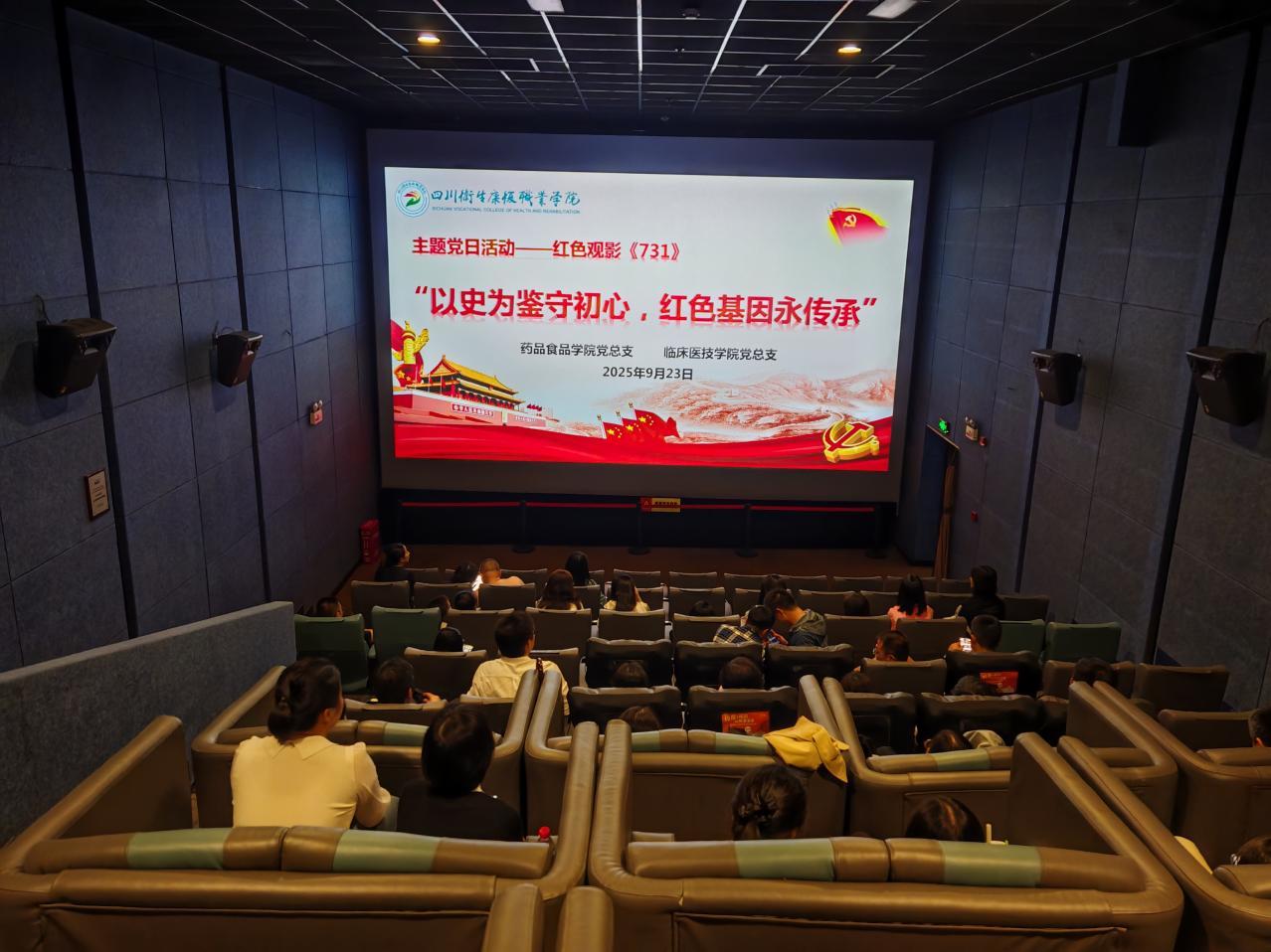 为大力弘扬爱国主义精神,9月23日,药品食品学院党总支与临床医技学院党总支联合开展“以史为鉴守初心,红色基因永传承”主题活动,学校纪委书记李雁梅、两学院师生党员同志及部分教职工代表集中观看电影《731》。