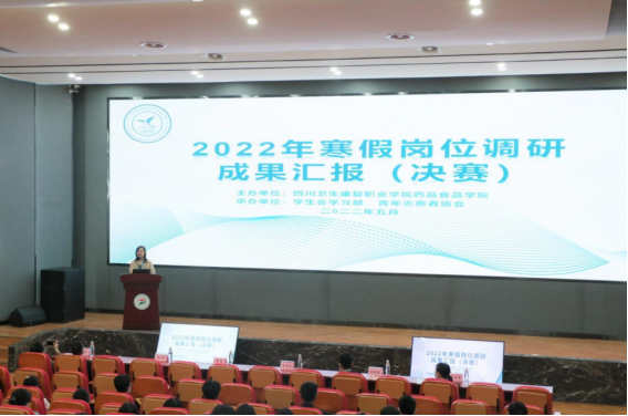 为进一步增强学生对专业及岗位的认知和了解,明确学习目标和职业发展规划,药品食品学院利用寒假组织了以“百年峥嵘不忘初心,风华正茂逐梦前行”为主题的学生岗位调研活动,并于5月18日下午在3-C209举行了调研成果汇报决赛。经过前期对75份作品的初评,最终有10支队伍脱颖而出进入到决赛。活动邀请学校教务处副处长唐虹、学院副院长李鹏杰、学生科科长唐彬、教学科科长张锐毅、实验实训中心主任颜睿、药品经营与管理教研室教师梁菊俄担任活动评委,约170名学生在现场进行了观摩。