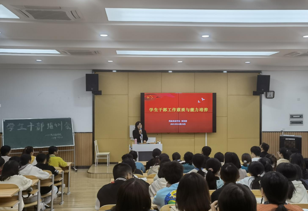 杨院长以《学生干部基本素质与工作能力》为题,从学生干部的角色定位,学生干部具有的基本意识,学生干部的工作能力以及学生干部应该处理好的关系四个方面详细讲解了学生干部工作素质与工作能力的培养。她强调,学生干部要掌握科学的工作方法,从大局出发考虑问题。同时要有“责任意识、奉献意识、服务意识、团队意识”,提高组织管理能力、沟通协调能力、心理调节能力和开拓创新能力,不断创新思路,紧跟时代发展的步伐,共同促进学院高质量发展。