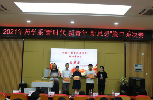 为丰富大学生校园生活,让同学们深刻明白自律的重要性,药学系团总支自律委员会于6月8日在1-B401举行了“新时代 新青年 新思想”脱口秀比赛。本次比赛特邀药学系主任钟辉云、副主任杨光丽、康复系吉思佳、李雪薇以及药学系部分老师担任评委。