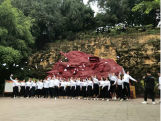 接着,同学们来到纪念碑前,21米高的纪念碑庄严肃穆,碑体似一双巨手,带着圣洁的光辉,伸向万里长空,遥祭英烈忠魂。在陈列馆,钟辉云主任为同学们上了一堂生动的实地团课,他带领同学们重温五四运动百年历史,号召广大同学要继承革命先烈的革命精神,为中华民族伟大复兴不懈奋斗。优秀团员代表杨玉婷同学在团旗下作了“弘扬五四精神,争做时代新人”的主题演讲。随后,同学们一起重温了入团誓词、共唱共青团团歌。最后,同学们纷纷写下自己的活动感悟和今后的奋斗目标,表示作为新时代青年,要立鸿鹄志,为祖国建设贡献自己的青春力量。