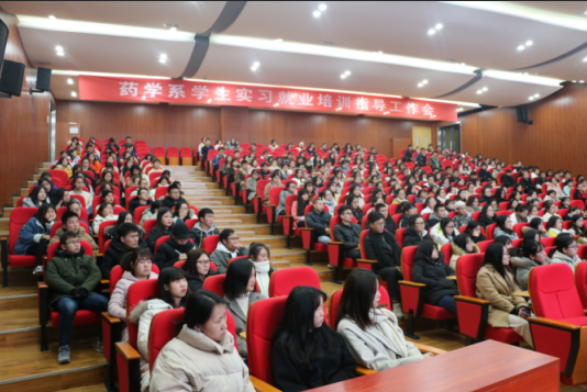 12月11日晚,药学系在3-C209举行了实习与就业培训指导工作会,此次培训指导工作会由药学系主任钟辉云主讲,药学系师生300余人参加。