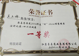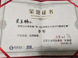开元官网首届“豪森医药班”、16级药学1班学生吴玉琳,在江苏豪森药业集团有限公司举办的“昕show销售精英演讲比赛”――四川区域赛中荣获一等奖,在集团总部决赛中荣获“季军”。