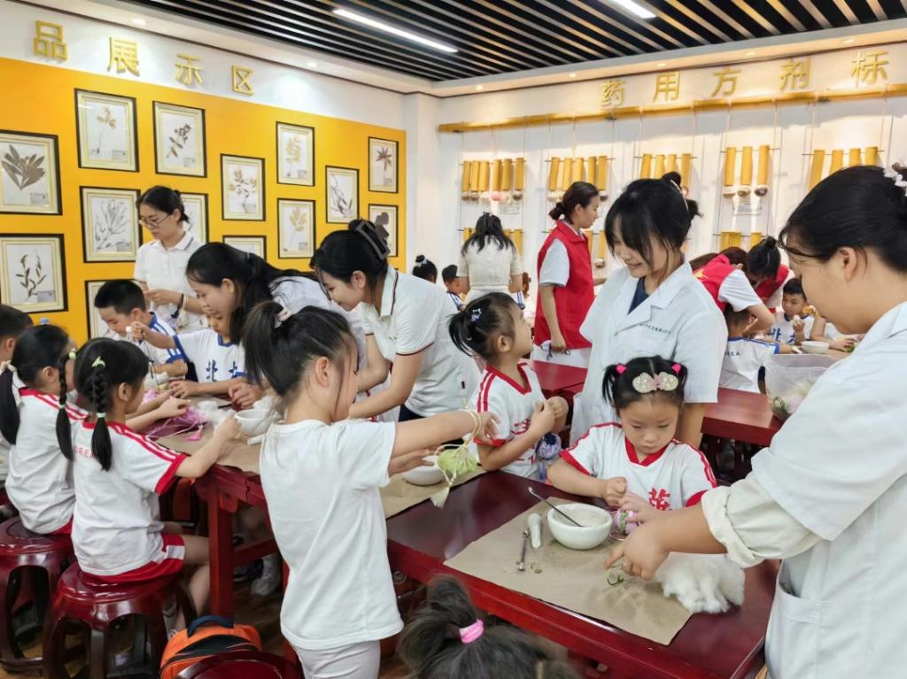 本次研学活动由中医药文化科普实践基地科研科普社承办。金苹果幼儿园师生参观了中药文化馆,观看了中医药科普短片,体验了中药扎染、中药拓染和中药香囊制作,通过眼观、鼻闻、手触、体感的方式,为中医药这个中华优秀传统文化种下了一颗宝贵的种子。