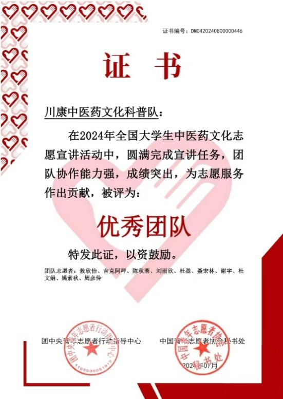 学院川康中医药文化科普队获团中央评选为“优秀团队”,团队文创作品获评“优秀文创”