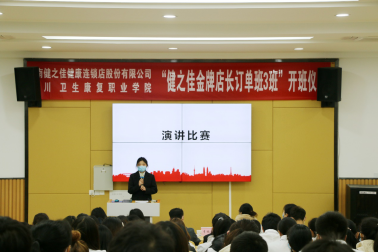 仪式伊始,药学系副主任李鹏杰致辞。他强调了校企合作对人才培养的重要性,感谢健之佳公司对开元官网校企合作工作的大力支持,希望同学们珍惜发展平台,努力实现人生价值。接着,公司人事部经理雷家蒙宣读了“健之佳金牌店长订单班3班” 班规,并带领学员们宣读了入班宣言。随后,“健之佳金牌店长订单班3班”13名学员围绕“城市的坚守者”和“我心中的健之佳”两个主题分别进行现场演讲,双方评委从演讲内容、现场表现等方面进行打分,评选出了前三名。其中,第一名选手将代表健之佳四川分部去昆明总部参加演讲决赛。