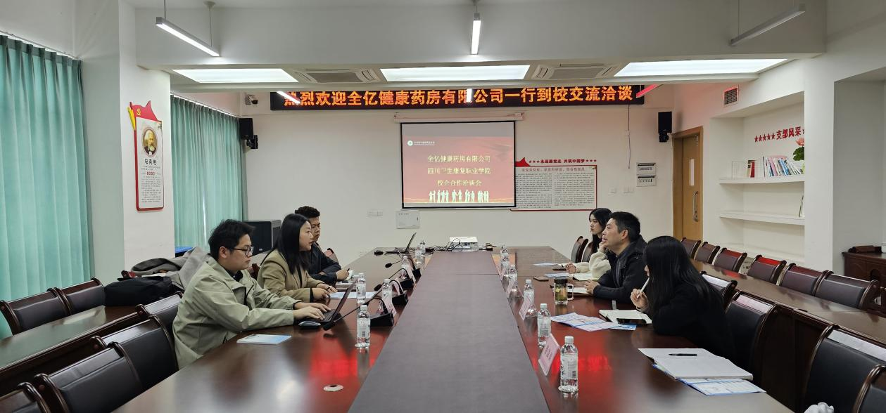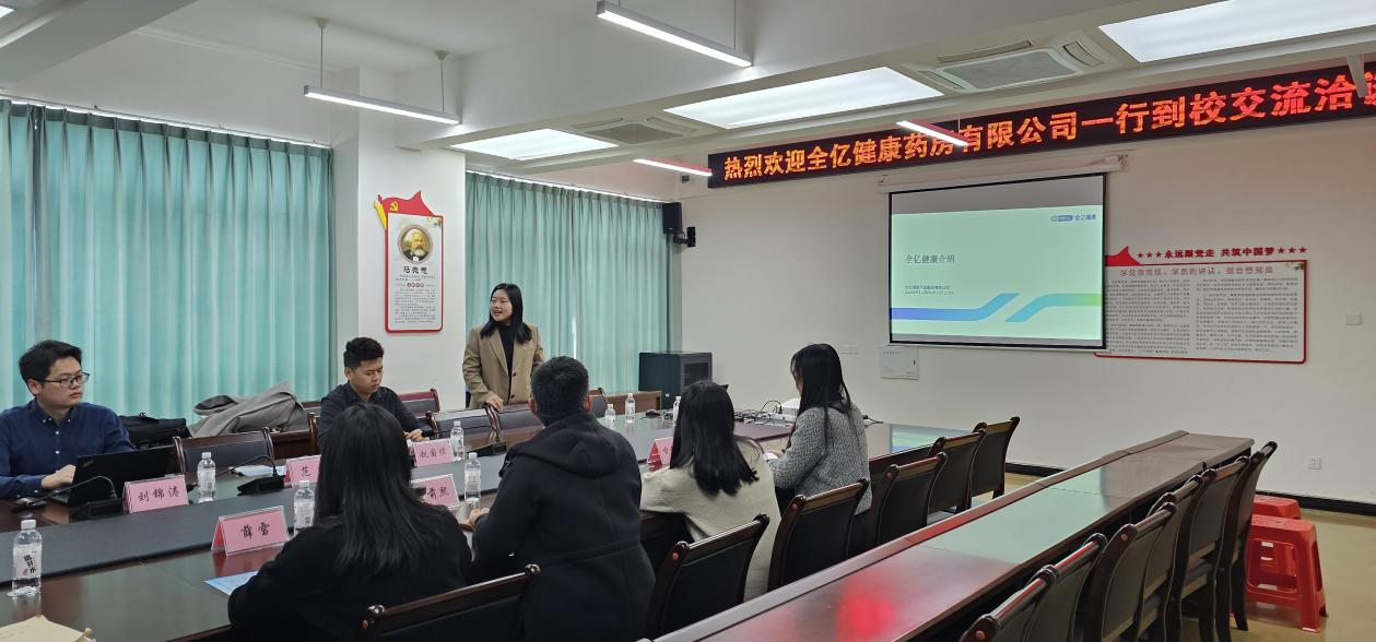 2024年3月12日,江苏全亿健康药房有限公司雇主品牌总监范娜一行3人到校,就前期签订的教育部第三期供需对接就业育人项目进行深入交流洽谈。