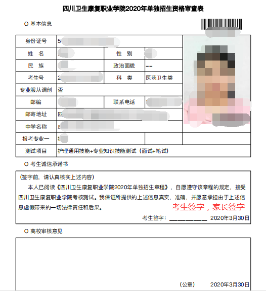 (1)《KY开元集团官网2020年单独招生资格审查表》(考生本人及家长签字);
