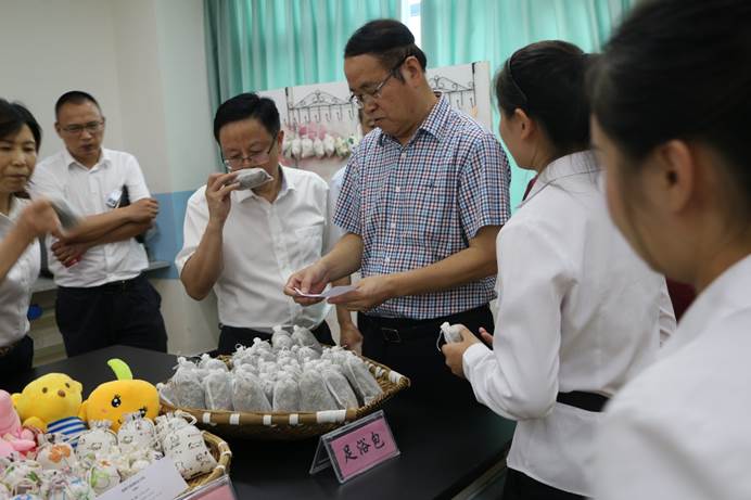 考察组现场参观了基地GMP模拟车间、伪劣药陈列室、中药文化馆、中医药文化宣传长廊、中药学实验实训区、模拟药房、针灸推拿体验区、“药香堂”创新创业工作坊和中药质量控制科普区,观看了基地宣传片和听取了基地文化建设、资金投入、活动成效、工作规划等情况的详细汇报。专家组对基地在中医药文化建设与传承宣教方面所做的工作和产生的成效表示肯定,同时也对基地的建设提出了宝贵意见和建议指导。